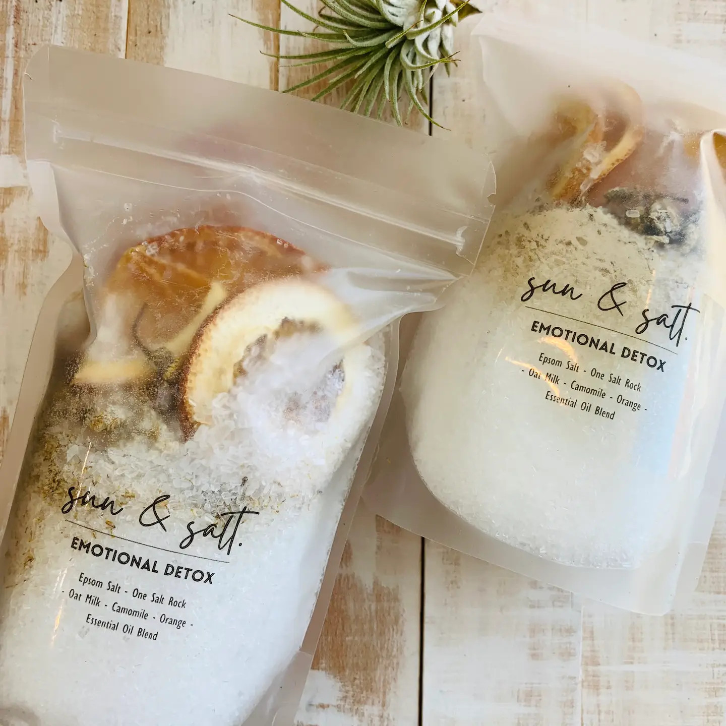 Emotional Detox Bath Soak - Epsom Salt- Himalayan Salt Rock- Camomile- Oat Milk Powder- Orange Slices- Essential Oil Blend. 6oz (2-3 Baths)