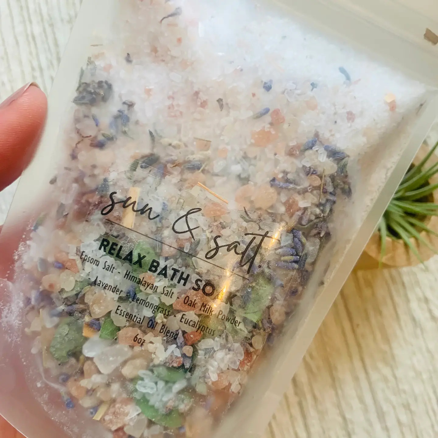 Relax Bath Soak- Epsom Salt- Himalayan Salt- Oat Milk- Lavender- Lemongrass - Eucalyptus-Essential Oil Blend