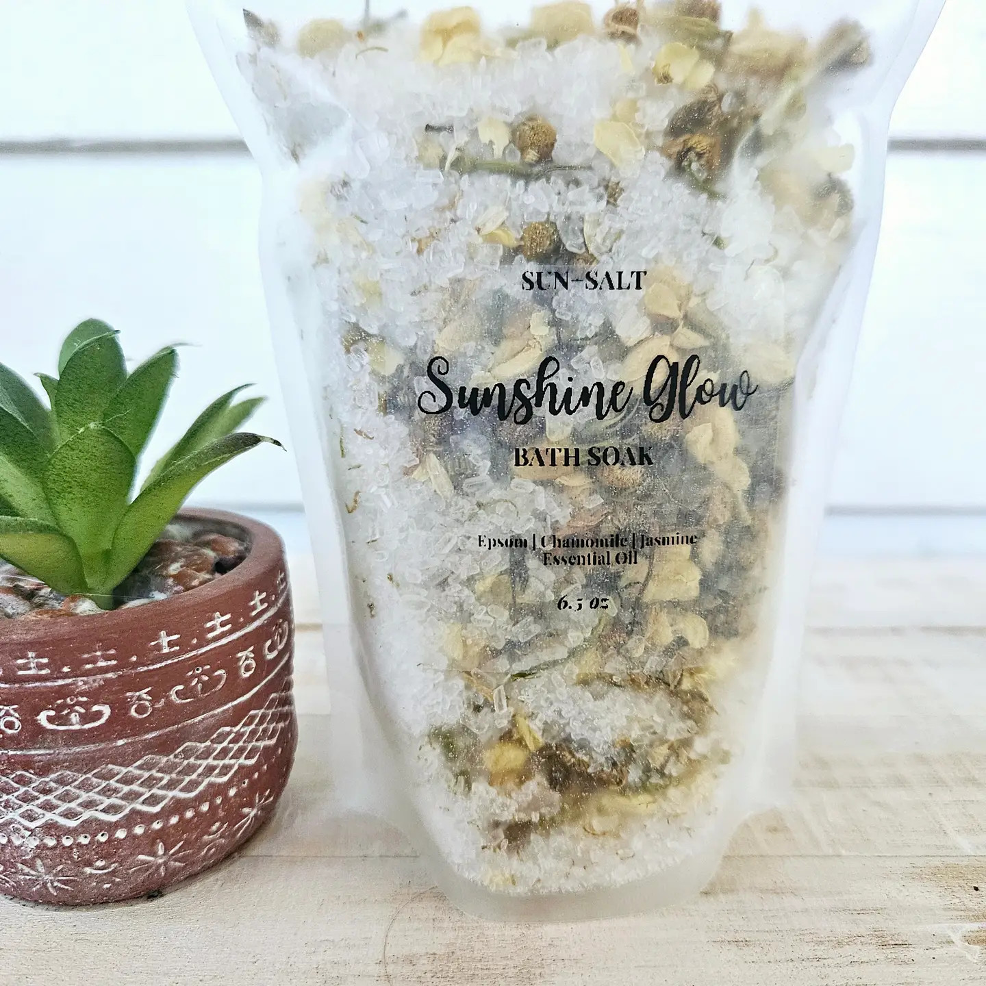 Sunshine Glow Bath Soak- Epsom Salt- Himalayan Salt- Chamomile- Jasmine- Essential Oil Blend 6.5oz