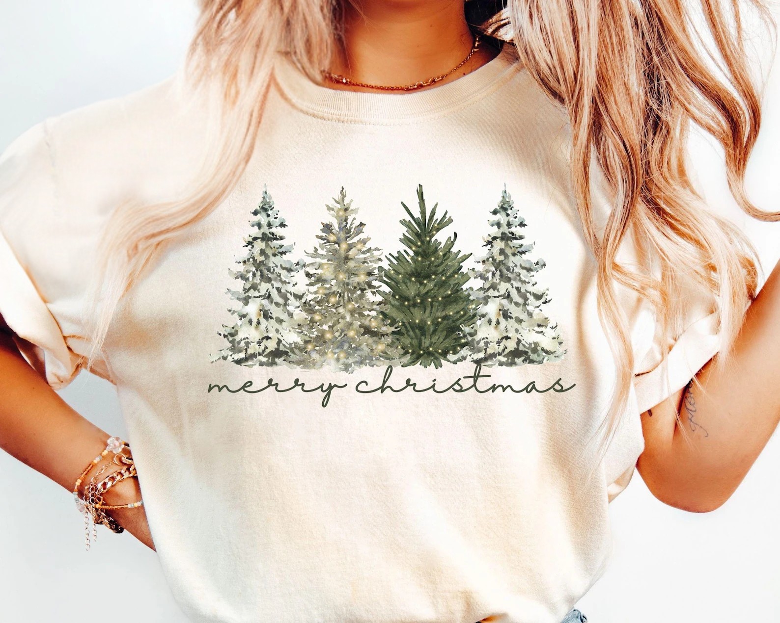 Step into a forest of festive charm with our Christmas Tree Wonderland Tee—featuring five stylized evergreens in soft winter hues and a delicate Merry Christmas script. It’s the perfect blend of cozy and chic, made for tree-trimming, cocoa-sipping, and joyful gifting.