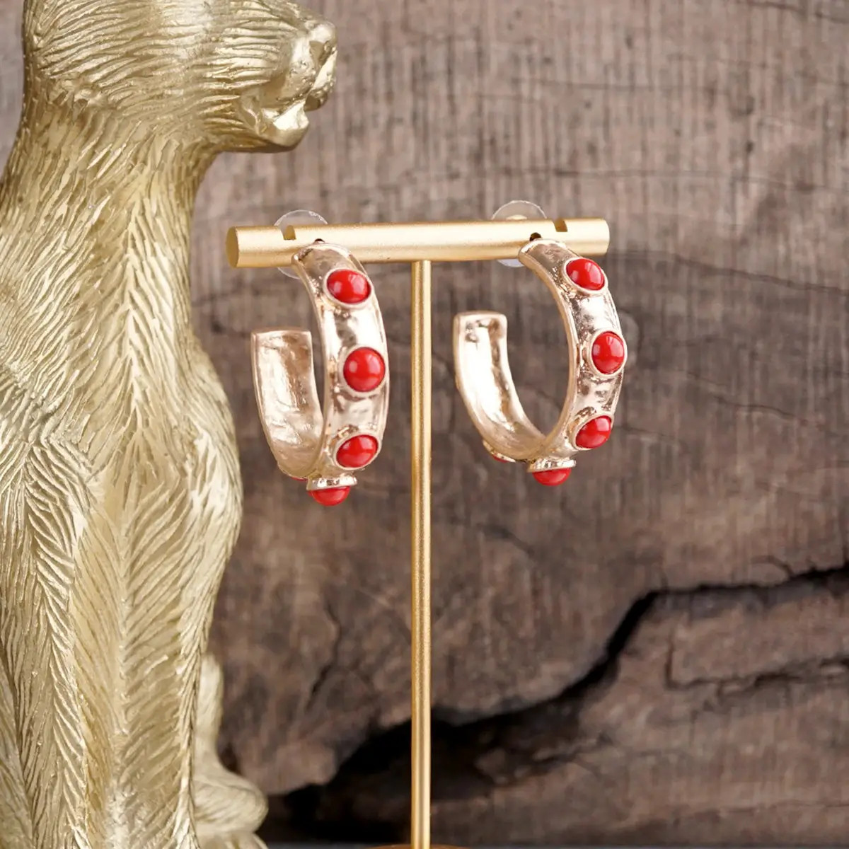 A fresh twist on a timeless silhouette, the Eternity Earrings feature vibrant acrylic cabochons set in a gold-tone, organically textured hoop. With a 1.25" drop and post-back closure, these earrings are lightweight yet statement-making—ideal for dressing up basics or adding a pop of personality to your favorite outfit.
