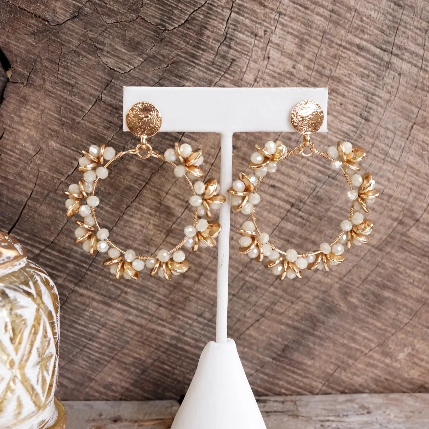 Elevate your style with our stunning Floral Wreath Earrings. These boho chic flower earrings are the perfect accessory to add a touch of elegance and whimsy to any outfit. Crafted with intricate details, these earrings feature delicate floral wreaths that exude a feminine and romantic vibe. The earrings are lightweight and comfortable to wear all day long, making them ideal for both casual and formal occasions. Made with high-quality materials, these earrings are durable and will remain in pristine condition for years to come. Add a pop of floral beauty to your look with our exquisite Floral Wreath Earrings.