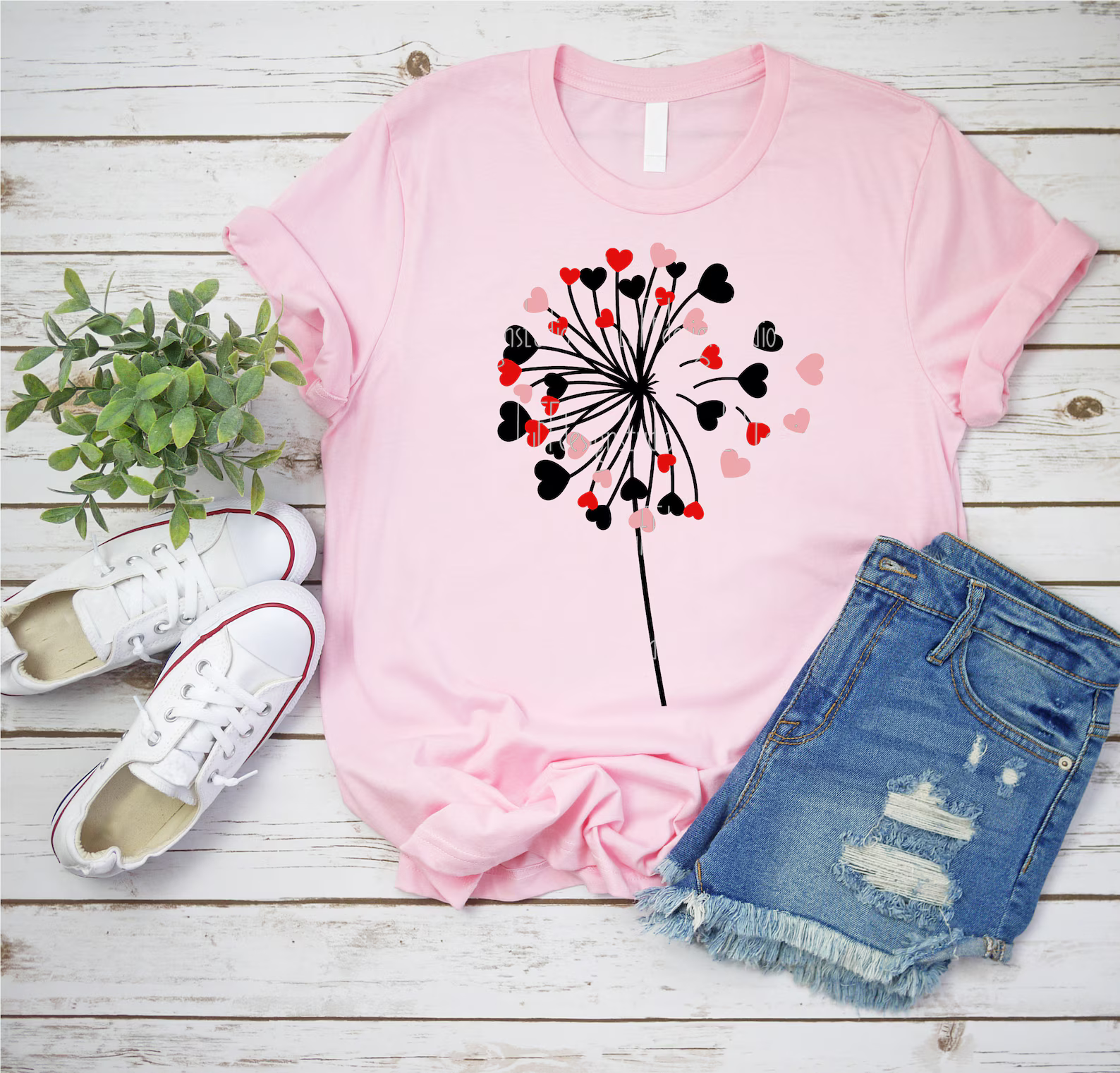 - Heart-shaped dandelion graphic with romantic and playful details