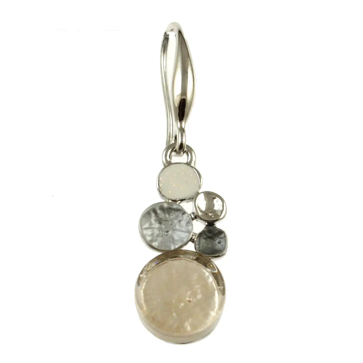 Playful yet refined, these Multi Dot Earrings feature a cascading cluster of circular shell and resin elements in soft natural tones or light blue. Their delicate design and lightweight feel make them perfect for everyday wear, while the hypoallergenic hooks ensure comfort for sensitive ears.